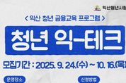 코리아타임뉴스 전북취재본부 | 익산시가 청년들의 자산 형성과 경제적 자립을 지원한다. 익산시는 오는 10월 21일부터 12월 16일까지 청년 맞춤형 금융교육 '청년 익테크'를 진행한다고 23일 밝혔다. 이번 프로그램 '익테크'는 익산과 재테크를 결합해 만든 명칭으로, 익산 청년들이 현명하게 돈을 관리하고 미래를 설계할 수 있도록 돕는다는 의미를 담고 있다. 교육 과정은 실생활에 밀접한 금융 지식을 중심으로 △월급 관리 기초와 세금 이해 △금융 상품과 경제 시장의 흐름 △노후 준비와 연금 체계 등 3개 강좌로 구성됐다. 교육은 참여자의 수요를 고려해 A·B·C반으로 나눠 반별 3회씩 운영되며, 매주 화요일 오후 6시 30분부터 8시 30분까지 익산청년시청에서 열린다. 대상은 익산에 거주하는 18~39세 청년으로, 반별 15명씩 총 45명을 선착순으로 모집한다. 참여 신청은 오는 24일 오전 9시부터 10월 16일까지 익산청년시청 누리집에서 가능하다. 각 강의는 사례 중심으로 진행되며, 질의응답과 함께 개인별 월급 관리 피드백도 제공한다. 더욱 자세한