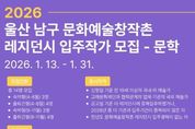 코리아타임뉴스 울산취재본부 | 고래문화재단이 운영하는 울산 남구 문화예술창작촌이 2026년도 레지던시 사업에 참여할 입주작가를 1월 13일부터 1월 31일까지 공개 모집한다. 공개모집 분야는 문학, 시각·예술 2개 분야로 문학 분야는 장생포 아트스테이에서 시, 소설, 아동문학, 희곡, 수필 등 다양한 장르의 작가 총 14명에게 4월부터 3개월 단위로 운영한다. 시각예술 분야는 창작스튜디오 131에서 회화, 조각, 사진, 설치, 미디어 등 장르의 예술가 3명에게 3월부터 11월까지 9개월간 작업실과 프로그램 연계 혜택을 지원하게 된다. 특히 올해 문학 분야는 지역에 새로운 문학적 시선을 유입하고 차세대 작가들의 성장 기반을 마련하고자 예비·신진 작가 중심의 모집을 통해 더 많은 청년 창작자들이 창작 활동을 시작하고 지속할 수 있도록 지원 폭을 확대할 예정이다. 고래문화재단은 추후 서류 검토와 인터뷰 심사를 거쳐 최종 입주작가를 선정할 계획이며 선정된 예술가에게는 작업실 제공과 함께 창작지원금, 워크숍 등의 혜택이 주어진다. 모집 접수는 1월 31일 토요일 오후 5시까지 진행되며 신청 서
