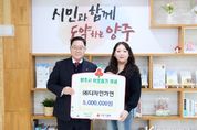 코리아타임뉴스 윤광희 기자 | ㈜디자인가연이 12일 시장실에서 새해를 맞아 이웃돕기 성금 500만 원을 양주시에 기탁했다. 이번 기부는 지역에서 사업을 이어오며 느낀 감사의 마음을 지역사회와 나누고자 마련된 것으로, 기탁된 성금은 경기 사회복지공동모금회를 통해 관내 취약계층 지원에 사용될 예정이다. 김경미 대표는 “공간을 만드는 일은 결국 사람의 삶과 맞닿아 있다고 생각한다”며 “새해를 시작하며 어려운 이웃들의 일상에도 작은 힘이 되길 바라는 마음으로 기탁하게 됐다”고 말했다. 양주시 관계자는 “연초부터 지역사회를 향한 따뜻한 실천을 보여주신 김경미 대표님께 깊은 감사를 드린다”며 “전해주신 마음이 도움이 필요한 이웃들에게 잘 전해질 수 있도록 하겠다”고 전했다.