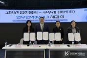 코리아타임뉴스 기동취재팀 | 고양산업진흥원이 지난 10일 오전 고양 스마트시티센터 오픈랩에서 중국 절강성 구주시 상무국과 공동협력을 위한 업무협약(MOU)을 체결했다고 밝혔다. 협약 체결식에는 여민초 구주시 상무국 부국장, 란소방 공상연합회 부주석, 여경창 흥융상무발전유한공사 대표 등 구주시 방한단과 고양산업진흥원 한동균 원장, 최아람 고양투자청장 등이 참석했다. 이날 행사는 ▲양 기관 대표 인사 ▲홍보 동영상 상영 및 기관 소개 ▲업무협약 체결 ▲업무 협의 등의 순으로 진행됐다. 협약을 계기로 정보통신, 콘텐츠 등 산업, 창업, 문화 등 분야에서 공동협력 할 계획이다. 구주시는 절강성 서부에 위치한 인구 230만 명의 도시로 기계, 화학 공업 등이 발달해 있고 한국기업이 진출해 있다. 여민초 부국장은 “고양시의 첨단산업단지 계획과 아쿠아스튜디오 등에 대해 알게 됐다. 양 도시 기업인 간의 협력 활성화를 기대한다.”고 말했다. 한동균 원장은 “오늘 협약이 고양시와 구주시 간 교류의 발판이 되고, 공동 발전할 수 있는 계기가 되길 바란다”고 말했다.
