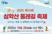 코리아타임뉴스 기동취재팀 | 파주시 교하동 주민자치회는 오는 25일 10시, 심학초등학교에서 ‘2025년 제10회 심학산 둘레길 축제’를 개최한다고 밝혔다. ‘깊어가는 가을 속 심학산으로 초대합니다’를 주제로 열리는 이번 행사는 가족이 함께 걷고 즐기는 가을맞이 지역 축제로, 심학산의 아름다운 둘레길을 배경으로 다양한 프로그램이 진행될 예정이다. 이날 축제는 오전 10시 식전 공연을 시작으로, 11시 개막식이 진행된다. 축제 현장에는 체험공간, 먹거리 장터, 농산물 직거래 장터, 풍자화(캐리커처) 무료 체험(선착순 30명) 등 풍성한 볼거리와 즐길 거리가 마련된다. 또한 경품 추첨과 노래자랑 등 참여형 행사도 진행되며, 75인치 발광다이오드(LED) 텔레비전 등 푸짐한 경품이 준비돼 있다. 특히 올해 축제에는 파주시 홍보대사이자 초대가수 김대훈이 출연해 신나는 무대를 선보일 예정이다. 박용호 교하동 주민자치회장은 “올해로 10회를 맞은 심학산 둘레길 축제는 주민이 주도하는 교하동의 대표 축제로 자리 잡았다”라며 “마을회관에서 행사장까지 차량 지원을 제공하는 등 많은 주민들이 불편 없이 참여할 수 있