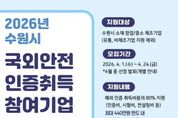 코리아타임뉴스 사회팀 | 수원특례시가 관내 중소기업이 국외 안전인증 취득하는 데 소요되는 비용을 지원한다. 수원시는 24일까지 ‘2026년 국외 규격인증 취득 지원사업’에 참가할 창업·중소·제조기업 8개 업체를 모집한다. 인증비·시험비·컨설팅비 등 안전인증 취득에 필요한 총비용의 80%를 실비로 지원한다. 기업당 최대 2개 제품의 인증 취득을 지원하고, 지원 한도는 기업당 440만 원이다. 지원 분야는 미국 안전인증(UL·FCC·FDA), 유럽 안전인증(CE) 등 436개 규격이다. 제품안전인증이 아닌 아이에스오(ISO) 인증은 제외된다. 수원시 관계자는 “중소제조기업에게는 국외 안전인증을 취득하는 과정이 수출 장벽처럼 느껴질 정도로 쉽지 않다”며 “기업이 교역 대상국의 안전 규제에 선제적으로 대응할 수 있도록, 국외 안전인증 취득을 지원하겠다”고 말했다.