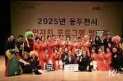 코리아타임뉴스 경기취재본부 | 동두천시 주민자치협의회는 지난 19일 시민회관에서 2025년 주민자치 프로그램 발표회를 개최했다. 이날 행사에는 8개 동 주민자치위원과 프로그램 수강생, 박형덕 동두천시장, 김승호 시의장을 비롯한 300여 명이 참석했다. 이번 발표회에는 주걱장구난타, 힐링건강댄스, 라인댄스, 리듬북, 트롯고고장구, 생활댄스, 퓨전국악 등 8개 팀이 무대 공연을 펼쳤다. 또한 서예, 파스텔화, 서각, 자수·퀼트, 전통민화, 동양화 등 전시 프로그램도 함께 운영돼 관람객들에게 다양한 볼거리를 선사했다. 공연 부문에서는 ▲최우수상 송내동 ‘트롯고고장구’ ▲우수상 불현동 ‘라인댄스’ ▲장려상 생연1동 ‘주걱장구난타’ 팀이 수상했으며, 전시 부문 최우수상은 불현동 ‘전통민화’ 팀에게 돌아갔다. 또 응원상은 생연1동이 수상했으며, 최우수 공연팀인 송내동 ‘트롯고고장구’ 팀은 내년 경기도 주민자치 문화 경연대회에 참가할 예정이다. 황용택 주민자치협의회장은 “많은 주민자치위원과 수강생들이 적극적으로 참여해 주신 데 감사드린다”라며 “이번 발표회가 각 동이 교류하고 소통하는 뜻깊은 자리가 되길 바란다”라고 말했다