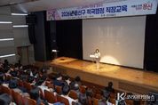 코리아타임뉴스 노승선 기자 | 서울 용산구가 지난 26일 용산아트홀 소극장 가람에서 소속 공무원과 용산구시설관리공단 직원을 대상으로 적극행정 직장교육을 실시했다. 적극행정을 실천하는 조직 문화 확산을 위해 마련한 이번 교육은 실시간 온라인 생중계도 병행해 전 직원이 참여할 수 있게 했다. 강의는 충주시 B급 홍보를 개척한 현 조남식 인사혁신처 적극행정 전담강사가 맡았다. ‘나는 공무원에 인생을 걸었다’를 주제로 적극행정 개념, 사례, 적극행정 공직자의 선한 영향력 등을 살펴봤다. 특히 충주시 B급 홍보를 처음 개척하고 입직 5년 만에 규제혁신으로 대통령상을 받은 강사 경험담을 중심으로 적극행정에 대한 정서적 저항을 해소하는 데 중점을 뒀다. 적극행정 사례로는 2022년 무계획적인 사업 신청을 막기 위해 농어촌정비법 개정 건의를 추진한 건을 소개했다. 현장에서 교육을 들은 어르신복지과 이지민 주무관은 “적극행정은 어렵고 복잡한 것이 아니라 주변을 관심 있게 둘러보는 마음만 있으면 시작할 수 있다는 걸 다시금 알게됐다”라고 밝혔다. 이날 박희영 용산구청장은 지난해 완료한 지역