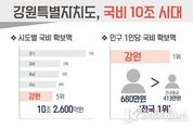 코리아타임뉴스 김택호 기자 | 강원특별자치도는 국비 확보 10조 시대에 진입한 가운데, 인구 1인당 국비 확보액이 약 680만 원으로 전국 1위에 해당한다고 밝혔다. 2026년도 강원특별자치도 국비 확보액은 총 10조 2,600억 원으로 경기, 경북, 충남, 경남에 이어 전국 시도 중 5위에 해당한다. - 이는 도보다 인구가 2배 이상 많은 인천(6조 4,000억 원)과 부산(10조 2,000억 원)보다 많은 수치이다. 특히 국비 총액을 인구수로 환산한 인구 1인당 국비 확보액은 약 680만 원으로 전국 평균 413만 원을 크게 웃도는 수치다. 도는 이번 국비 확보 성과가 정부 차원에서 도가 추진 중인 주요 사업의 필요성과 중요성에 대한 공감한 결과로 보고 있다. 도는 앞으로 국비가 단순한 규모에 그치지 않도록 사업 추진의 완성도와 체감 성과를 높이는 데 행정력을 집중할 계획이다. 김진태 지사는 “국비 10조 원이 체감되기 어려울 수 있지만 총 규모로는 전국 기준 5위, 도민 1인당으로 환산하면 약 680만 원으로 전국 1위에 해당한다”며, “확보된 국비가 현장에서 차질없이