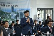 코리아타임뉴스 노승선 기자 | 18일 거제 소노캄에서 ‘거제 기업혁신파크 성공추진 선포식’이 열렸다. 이번 행사는 경상남도, 거제시, ㈜그란크루세, 참여기업 및 핵심 입주기업들이 모여 거제 기업혁신파크의 성공적인 추진을 다짐하고, 협력과 상생의 기반을 다지기 위해 마련됐다. 선포식에는 박완수 경상남도지사를 비롯해 변광용 거제시장, 서일준 국회의원, 도·시의원, 거제 기업혁신파크 사업 공동제안자로 참여한 민간기업 ㈜그란크루세 김수홍 회장, 참여기업 ㈜수산인더스트리 김병현 사장, ㈜다산네트웍스 손경철 부회장, 네이버클라우드(주) 김준범 상무 등 관계자 20여 명이 참석했다. 행사는 △㈜그란크루세의 거제 기업혁신파크 사업 계획과 비전 제시, △참여기업의 시설 투자 등 참여계획 발표, △참석자들의 성공추진 선언문 낭독 순서로 진행됐다. 지난 10월 ㈜그란크루세와 네이버 클라우드(주)가 거제 기업혁신파크 참여기업(지분 투자)으로 투자확약서(LOC)를 체결한 이후 사업이 본궤도에 오르면서, 이번 선포식 추진에도 탄력이 붙었다. 변광용 거제시장은 지난 6월 네이버 클라우드의 기업혁신파크 투자유치를