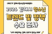 코리아타임뉴스 오영주 기자 | 김해시청소년센터가 운영하는 김해시청소년참여위원회는 지역 청소년의 일상을 반영한 정책 발굴을 위해 ‘2026 김해시 청소년 트렌드 및 정책 수요조사’를 실시한다. 김해시청소년참여위원회는 '청소년기본법' 제5조의2에 따라 청소년이 정책 수립과정에 주체적으로 참여할 수 있도록 구성된 공식 참여기구로, 청소년의 의견을 정책에 반영하는 역할을 수행하고 있다. 이번 조사는 기존 통계자료를 기반으로 질문을 구성해 정책 활용도를 높였다. ‘2025년 김해시 청소년종합실태조사’, ‘청소년 통계’, ‘아동·청소년 삶의 질 보고서’를 반영하여 문항을 구성했으며, 2026년 현재 청소년들의 생활 변화와 수요를 구체적으로 파악하는 데 중점을 뒀다. 설문은 ▲일반사항 ▲일상 및 여가 ▲디지털·AI 활용 ▲고민 및 스트레스 ▲청소년 정책 및 인프라 수요 ▲내가 살고 싶은 도시, 김해 등 6개 분야 24개 문항으로 구성되며, 조사 결과는 청소년참여위원회 정책 제안 활동과 연계해 향후 청소년 정책 수립과 사업 기획의 기초자료로 활용될 예정이다. 강미선 김해시청소년센터장(아동청소년과장