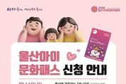 코리아타임뉴스 울산취재본부 | 울산시가 초등학생 자녀를 둔 가정의 문화 향유 기회를 넓히기 위해 연간 10만 원 상당의 ‘울산아이문화패스’를 지원한다. 울산시는 7~12세(2014~2019년생) 초등학교 연령대 아동 전체를 대상으로 문화예술활동비 10만 원을 지급하는 울산아이문화패스 사업을 오는 3월 3일부터 시행·접수한다고 밝혔다. 이 사업은 문화와 예술을 통해 창의력과 감수성을 키울 수 있도록 지원하는 울산형 문화복지 정책으로 산업과 문화, 시민생활이 조화로운 ‘꿀잼도시 울산’ 실현을 위한 핵심 시책 중 하나이다. 특히 자녀양육가구의 경제적 부담 경감은 물론, 문화소비 진작을 통한 아동의 문화복지 증진과 지역문화예술 활성화가 기대된다. 지원 대상은 울산시에 주민등록이 돼 있는 7~12세 아동 전원이다. 신청기한은 오는 3월 3일부터 12월 11일까지로 ‘울산아이문화패스’ 공식 누리집에서 가능하다. 법정 친권자인 부모가 온라인 본인 인증만으로 간편하게 신청할 수 있으며, 별도의 구비서류는 필요 없다. 카드는 신청 시 기재한 주소지로 우편 발송되고, 수령 즉시