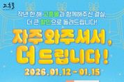 코리아타임뉴스 전남취재본부 | 고흥군이 운영하는 공식 온라인 쇼핑몰 고흥몰이 오는 1월 12일부터 15일까지 4일간, 단골 고객을 대상으로 특별 기획전 ‘자주 와주셔서, 더 드립니다’를 진행한다. 이번 기획전은 2025년 연간 최대 매출 달성을 기념하고, 그 성과에 기여한 구매 고객에게 감사의 뜻을 전하기 위해 마련됐다. 2025년 한 해 고흥몰 주문 횟수를 기준으로 고객별 차등 할인 혜택을 제공하는 것이 특징으로, 고흥몰을 꾸준히 이용해 온 단골 고객일수록 더 큰 혜택을 받을 수 있도록 설계된 고객 감사형 프로모션이다. 행사 기간 고객은 주문 이력에 따라 최대 50% 할인 쿠폰을 받을 수 있으며, 할인 한도는 최대 2만 원이다. 해당 쿠폰은 고흥몰 전 상품에 사용할 수 있어 설 명절을 앞둔 실속 있는 장보기에 도움이 될 것으로 기대된다. 고흥몰 관계자는 “이번 기획전은 고흥몰을 꾸준히 이용해 주신 고객께 실질적인 혜택을 통해 감사의 마음을 전하고자 기획했다”며 “앞으로도 고객 이용 데이터에 기반한 맞춤형 혜택과 충성 고객 중심의 프로모션을 지속적으로 확대해 나가겠다”고 말했다. 한편, 고흥몰은 고