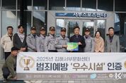 코리아타임뉴스 오영주 기자 | 김해문화관광재단 서부문화센터가 김해서부경찰서에서 주관하는 ‘범죄예방 우수시설(Crime Prevention Excellent Facility)’ 인증을 획득했다. 이번 인증은 공공·민간시설, 아파트 주민편의시설, 공영주차장 등을 대상으로 범죄예방 환경 조성 및 관리 시스템을 종합적으로 평가해 우수 시설에 부여된다. 서부문화센터는 지난 9월 중순 김해서부경찰서 범죄예방대응과의 현장 점검을 통해 시설 내외부 방범 인프라, 이용자 안전 확보를 위한 CCTV 및 비상벨 운영, 야간 조명 개선, 출입 통제 시스템 등 다양한 안전 요소에서 높은 평가를 받았다. 특히, 이용자 중심의 안전관리 체계 구축과 지속적인 시설 관리가 우수 사례로 인정됐다. 김해문화관광재단 김봉조 경영기획 본부장은 “서부문화센터가 지역 주민이 더욱 안심하고 이용할 수 있는 공간으로 인정받아 매우 뜻깊게 생각한다”며 “앞으로도 범죄 예방 및 안전 환경 조성을 위해 시설 점검 강화와 환경 개선에 지속적으로 힘쓰겠다”고 밝혔다. 김해서부경찰서 강진확 범죄예방대응과장은 “지역 사회의 안전을 위해 공공시