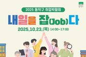 코리아타임뉴스 기동취재팀 | 동작구가 오는 23일 오후 2시 구청 신청사에서 2025 취업박람회 ‘내일을 잡(Job)다’를 개최한다고 밝혔다. 이번 박람회는 구직자의 취업 스트레스 해소와 역량 강화를 지원하기 위해 마련됐다. 관내 유한양행 등 다수의 우수기업과 유관기관이 참여해 채용 및 직업 탐색 기회를 제공할 예정이다. 특히, 올해는 축제 결합형 일자리박람회로서 신청사 곳곳에서 다양한 체험 부스와 부대행사가 함께 운영된다. 먼저, 4층 대강당에서는 관내 유한양행 등 20여 개의 참여기업이 ‘채용부스’를 설치해 구직자를 대상으로 현장 면접과 간접 채용을 진행한다. 또한 구청을 비롯해 동작취업지원센터, 서울관악고용복지+센터 등 유관기관에서 준비한 ‘홍보부스’에서는 취업·직업훈련·고용지원 정보를 제공한다. 이와 함께 4층 소회의실에는 △AI 인적성 검사 △취업타로 △퍼스널컬러 진단 △이력서 사진 촬영 등으로 구성된 ‘취업지원존’이 마련되며, 이곳에서는 이력서·자기소개서 1:1 컨설팅도 받을 수 있다. 1층 로비에는 △메이크업 아티스트 △아로마 향수 만들기 △네일아트 △캘리그라피