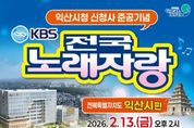 코리아타임뉴스 김태훈 기자 | KBS 전국노래자랑 무대가 익산을 찾아온다. 익산시는 오는 2월 13일 익산시실내체육관에서 전국노래자랑 '익산시 편'이 공개 녹화로 진행된다고 19일 밝혔다. 방송은 3월 말께 전국에 방영될 예정이다. 이번 무대는 시민의 염원이었던 익산시 신청사 개청을 다함께 축하하고, 힘찬 출발을 알리기 위해 마련됐다. 초대 가수로 박상철과 서주경, 양지은, 정서주, 김용빈이 출연해 축하 무대를 꾸민다. 본선 무대에는 예선을 통과한 15~17팀의 시민 참가자가 무대에 오르게된다. 참가 신청은 오는 23일부터 2월 5일까지 읍·면·동 행정복지센터 또는 시 행정지원과에서 선착순 300명까지 가능하다. 예심은 2월 11일, 솜리문화예술회관에서 열린다. 시 관계자는 "신청사 준공은 익산의 미래를 여는 상징적인 순간"이라며 "전국노래자랑을 통해 시민과 함께 신청사 개청을 축하하고, 익산의 밝은 에너지를 전국에 전하겠다"고 말했다.