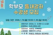 코리아타임뉴스 사회팀 | 속초교육문화관은 3월 정규 강좌 개강에 앞서 학습 공백기를 활용한 학습 기회를 제공하고자, 2월 3일부터 6일까지 학부모와 지역주민을 대상으로 ‘겨울 학부모 틈새강좌’를 운영한다. 이번 틈새강좌는 △달콤한 저장법 수제 청 만들기 △자연 성분 그대로 천연비누 만들기 △실속있게 배우는 선물 · 보자기 포장법 △손맛 담은 떡 공방 △나를 가꾸는 메이크업 기초로 총 5강좌이다. 각 강좌는 3회차로 운영되며, 강좌별 모집인원은 10명이다. 수강 신청은 1월 19일 오전 10시부터 25일 오후 6시까지 속초교육문화관 누리집에서 선착순으로 신청할 수 있다. 이윤전 속초교육문화관장은 “틈새강좌가 실생활에 바로 활용할 수 있는 배움의 기회를 제공해 학습 공백기를 효과적으로 채우는 계기가 되길 바라며, 많은 학부모와 지역주민의 관심과 참여를 바란다.”라고 말했다. 기타 자세한 내용은 속초교육문화관 누리집 공지사항을 참고하거나 문헌정보과로 문의하면 된다.