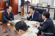 코리아타임뉴스 김택호 기자 | 이완섭 서산시장이 2026년도 국비 확보를 위한 발품행정에 총력을 기울인다. 이 시장은 13일 국회에서 성일종 국방위원장을 만나 2026년도 정부 예산 심의 과정에서 서산시 주요 현안 사업에 대한 국비 반영과 증액을 건의하고, 각 사업의 필요성을 직접 설명했다. 이날 논의된 주요 사업은 ▲한우역사박물관 ▲한국생명공학연구원 서산분원 ▲순환형 매립지 조성 ▲국립국악원 서산분원 ▲도심주변 친환경호수 조성 등 5개다. 시는 한우산업의 본고장인 운산면에 한우역사박물관 건립할 방침이며, 이를 위한 첫 단계로 기본계획 및 타당성 용역비 2억 원의 국비를 요청했다. 또한, 이 시장은 2026년 한국생명공학연구원 서산분원 설계비로 4억 1천만 원을 반영해 줄 것을 건의했다. 한국생명공학연구원 서산분원(총사업비 448억 원)은 최근 타당성 조사를 통과해 순항 중이며, 융합그린바이오의 핵심 거점이 될 전망이다. 이어, 관내 매립장 포화에 대응해 안정적인 폐기물 처리 체계를 구축하고자 추진 중인 환경종합타운 순환형 매립지 조성을 위한 기본 및 실시설계비 2억 원 확