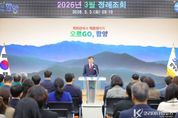코리아타임뉴스 오영주 기자 | 함양군은 3일 오전, 군청 대회의실에서 직원 120여 명이 참석한 가운데 2026년 3월 정례조회를 개최했다. 이번 정례조회는 표창 수여, 군수 훈시 및 직원 격려, 군민가 제창 순으로 진행됐다. 표창은 장관 표창(지방세외수입 발전 유공)과 도지사 표창(2025년 한우산업 발전 유공), 군수 표창(2026년 2월 이달의 공무원) 등 총 3건을 수여했다. 진병영 함양군수는 인사말을 통해 2026년 사업 추진과 내년도 국도비 확보 노력을 강조하면서 “주민들의 삶과 지역 발전에 큰 역할을 하는 공무원으로서 변화와 혁신을 지향하는 동시에 업무능력 향상에 최선을 다해 주길 바란다”라며 당부의 말을 전했다. 한편, 함양군은 건조한 기후와 강풍 등으로 산불 발생 위험이 커지는 시기를 맞아 안전의식 제고 및 산불 예방 문화 확산을 통해 소중한 산림자원을 보존하는데 모든 행정력을 집중할 예정이다.