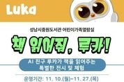코리아타임뉴스 경기취재본부 | 성남도시개발공사 중원도서관은 지역 어린이들에게 인공지능(AI) 기술을 활용한 새로운 독서 체험 기회를 제공하기 위해 ‘책 친구 로봇, 루카(LUKA)’를 오는 12월까지 운영한다고 21일 밝혔다. ‘루카’는 책 표지를 인식해 음성으로 내용을 읽어주는 인공지능 독서로봇으로, 유아와 어린이가 스스로 책을 읽고 들으며 독서의 즐거움을 느낄 수 있도록 돕는 AI 독서학습 보조기기다. 이번 사업은 루카를 활용한 전시와 기관 협력 프로그램을 통해 어린이들에게 친숙하고 흥미로운 독서 경험을 제공하고자 마련됐다. 먼저 중원도서관에서는 한 달간 ‘책 읽어줘! 루카’ 전시가 진행된다. 어린이·가족열람실에 루카와 전집을 함께 비치해, 어린이들이 직접 로봇을 체험하며 자연스럽게 책 읽는 즐거움과 호기심을 느낄 수 있도록 운영된다. 시민 누구나 자유롭게 참여 가능하며, AI 기술과 독서가 결합된 혁신적인 독서문화를 체험할 수 있는 특별한 기회를 제공한다. 또한, 도서관 밖에서도 아이들이 책과 만날 수 있도록 ‘책 나들이 ON 루카’ 협력 프로그램을 진행한다. &nbs