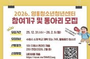 코리아타임뉴스 사회팀 | 수원시청소년청년재단 영통청소년청년센터가 2026년 활동에 함께할 청소년 참여기구 및 동아리 참가자를 모집한다. 모집 대상은 청소년운영위원회, 놀이동아리, 문화예술동아리연합 총 3개 분야이며, 선발 인원은 약 100명이다. ▲청소년운영위원회는 기관 운영 전반에 대해 청소년이 직접 의견을 제안하는 활동으로, 청소년의 주도성과 참여를 강화한다. ▲놀이동아리는 공동체 기반 놀이를 통해 건강한 또래 관계를 형성하고, ▲문화예술동아리연합은 댄스·밴드 등 다양한 장르에서 청소년의 문화예술 역량을 강화하는 동아리이다. 참여기구 및 동아리는 2026년 한 해 동안 진행되며, 센터의 주요 사업과 연계된 다양한 프로젝트에 참여하게 된다. 참여기구 및 동아리 모집 기간은 2026년 2월 9일까지이며, 신청은 홍보물 내 QR코드를 통해 온라인 신청서(네이버폼)를 작성해 제출하면 된다. 선발된 청소년들은 다양한 프로그램을 주도적으로 운영하게 된다. 영통청소년청년센터 관계자는“참여기구 및 동아리 활동은 청소년이 단순 참여자가 아닌, 스스로 활동을 만들어가는 주체로 성장할 수 있는 기회”라며 “다양한 관심과 열정을