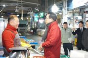 코리아타임뉴스 윤광희 기자 | 이완섭 서산시장이 우리 민족 고유 최대 명절인 설을 앞두고 13일 서산동부전통시장을 방문했다. 이날 이완섭 시장은 제수용품과 농축산물 판매 점포 등을 둘러보며 가격 동향과 수급 상황을 점검함과 동시에 시장 상인들의 애로사항을 청취하고 격려하는 시간을 가졌다. 설을 맞아 명절 성수품을 찾기 위해 전통시장을 방문한 시민들과 인사를 나누며 가족과 함께 따뜻한 명절을 보내길 바라는 덕담도 전했다. 이완섭 서산시장은 “어려운 여건 속에서도 지역 경제를 위해 애쓰시는 상인과 시민분들의 노력에 감사드린다”라며 “전통시장 활성화를 위한 다양한 시책을 마련하고 추진하는 데 최선을 다하겠다”라고 말했다.