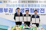 코리아타임뉴스 노승선 기자 | 오는 7월 전남광주특별시 출범이 예고된 가운데, 여수‧순천‧광양시 행정협의회(이하 협의회)가 이를 전남 동부권 재도약의 기회로 만들기 위한 협력에 나섰다. 13일 여수시에 따르면, 협의회는 이날 국립순천대학교 우석홀에서 제41차 정기회의를 개최하고 행정통합이라는 거대한 변화의 흐름에서 전남 동부권의 밝은 미래를 담보하기 위한 공동건의 3건(여수시 발의 2건)을 공식 의결했다. 이번 건의는 국가 기간산업의 심장부인 여수‧순천‧광양 지역이 전남광주특별시의 핵심 축으로 기능하기 위한 법적‧제도적 장치를 특별법에 마련해야 한다는 공감대에 따른 것이다. 여수‧순천‧광양시장은 이날 ‘전남 동부권 상생균형발전과 산업대전환’을 위한 행‧재정 지원 근거와 전남광주특별시 3개 청사의 기능별 본부제 운영의 특별법 반영, ‘KTX-SRT 통합에 따른 전라선 좌석 확대 공급’을 정부 부처 등에 건의했다. 협의회 관계자는 “이번 공동건의는 전남광주 행정통합을 전남 동부권 산업 경쟁력 극대화와 지역 소멸 위기 극복의 전환점으로 삼기 위함”이라며 “특별법 및 하위법령 제정과 정책 수립 과정에 반영