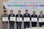 코리아타임뉴스 충북취재본부 | 청주시는 13일 임시청사 직지실에서 청주상공회의소 및 지역 내 주요 기업과 청주사랑상품권(청주페이) 활성화를 위한 업무협약을 체결했다. 이날 협약식에는 이범석 청주시장과 차태환 청주상공회의소 회장, 박호현 SK하이닉스㈜ 부사장, 김영대 ㈜LG화학 청주공장 대외협력팀장, 최상운 에코프로 부사장, 김용술 ㈜LG에너지솔루션 오창주재임원, 이규득 ㈜심텍 상무가 참여했다. 협약은 지역경제 활성화와 민생경제 회복을 위해 소상공인과의 상생 협력을 강화하고, 지역 내 소비를 촉진하기 위해 마련됐다. 협약의 주요 내용은 △직원들에게 지급하는 선택적 복지제도(복지포인트, 포상금 등) 중 일부를 청주페이로 지급하는 방안 마련 △설·추석 등 명절 기간 전통시장 장보기 행사 추진 △청주페이 사용 적극 홍보 등이다. 특히, 지난 9일 복대가경시장에서 열린 설맞이 전통시장 장보기 행사에는 이번 협약에 참여한 기업 중 에코프로와 ㈜심텍 임원들이 이범석 청주시장과 함께 참여해 지역 상생의 의미를 더했다. 이 시장은 “지역경제 활성화를 위한 이번 협약에 적극 동참해준 기업들의 지역사랑 실