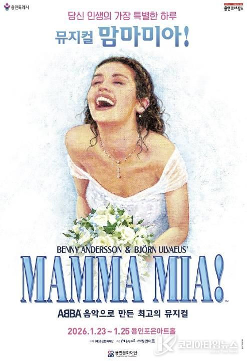 코리아타임뉴스 이아름 기자 | 용인문화재단은 오는 2026년 1월 23일부터 25일까지 뮤지컬 ‘맘마미아!’를 용인포은아트홀에서 개최한다고 밝혔다. 관람 연령은 초등학생 이상으로, 겨울방학 기간 가족·친구·연인 등 남녀노소 누구나 함께 즐길 수 있는 대표 뮤지컬을 3일간 총 4회에 걸쳐 선보인다.