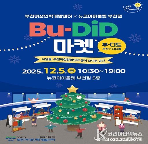 코리아타임뉴스 경기취재본부 | 부천여성인력개발센터는 Bu-DiD〔부-디드, 부천X디딤돌〕마켓을 12월 5일 10시 30분부터 19시까지 뉴코아 부천점 5층에서 개최한다.