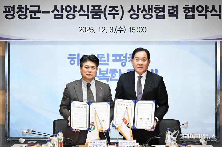코리아타임뉴스 김택호 기자 | 평창군과 삼양식품은 지방 소멸 위기에 대응하고 지속 가능한 지역 성장 기반을 마련하기 위해 ‘지방 살리기 상생 자매결연’ 업무협약을 체결했다.