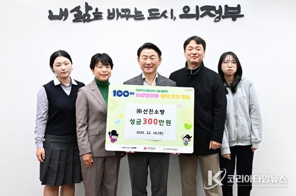 코리아타임뉴스 기동취재팀 | 의정부시는 12월 18일 ㈜선진소방이 ‘100일간 사랑릴레이 배턴 잇기’에 동참해 지역 내 취약계층 지원을 위한 성금 300만 원을 기탁했다고 밝혔다.