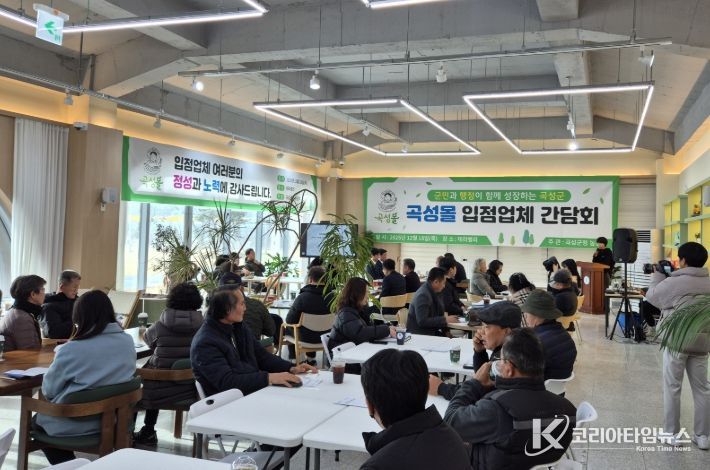 코리아타임뉴스 전남취재본부 | 전남 곡성군은 지난 18일 관내 소재한 디톡스테라피거점센터 테라밸리에서 2025년 곡성몰 입점업체 간담회를 개최하고 한 해 동안 곡성몰의 성장에 함께해 온 입점업체들의 노고에 감사를 전하며 의미 있는 한 해의 마무리를 함께했다고 19일 밝혔다.
