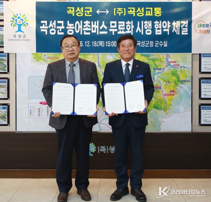 이에 앞서 지난 18일, 곡성군과 ㈜곡성교통은 군내버스 무료화 시행을 위한 업무협약을 체결하고 제도의 안정적 운영을 위한 협력 체계를 구축했다.