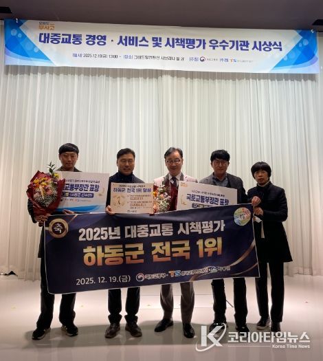 코리아타임뉴스 오영주 기자 | 하동군은 지난 19일 서울 그랜드힐컨벤션에서 열린 ‘2025년 대중교통 시책평가 시상식’에서 전국 76개 군 단위 지방자치단체 가운데 종합 1위를 차지하며 국토교통부 장관상을 수상했다.