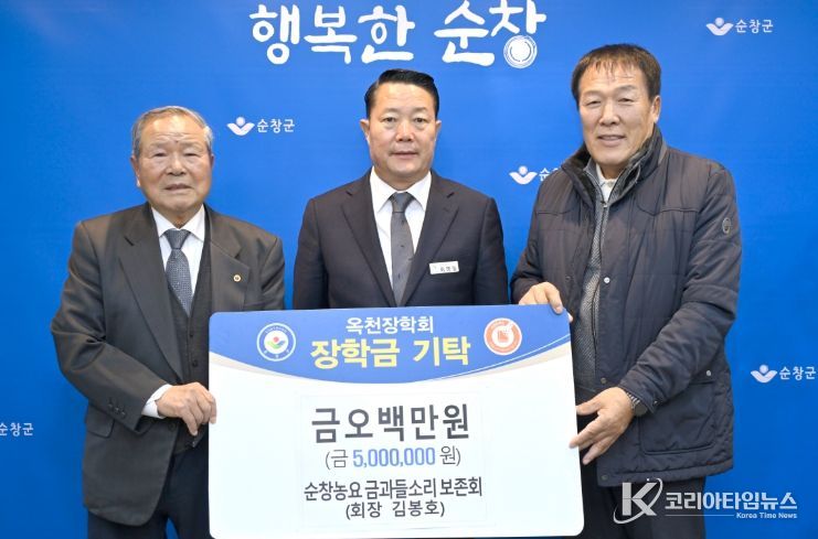 코리아타임뉴스 김태훈 기자 | 순창군은 최근 순창농요 금과들소리 보존회(회장 김봉호)가 (재)순창군옥천장학회에 장학금 500만원을 기탁하며 지역 인재 육성에 힘을 보탰다고 밝혔다.