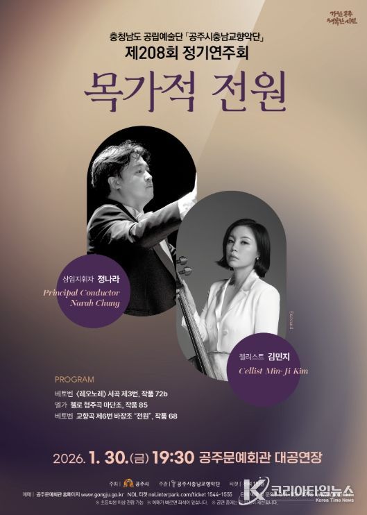 코리아타임뉴스 충남취재본부 | 충청남도 공립예술단 공주시충남교향악단은 오는 1월 30일19시 30분, 공주문예회관 대공연장에서 ‘목가적 전원’을 부제로 2026년 시즌의 첫 정기공연의 문을 연다.
