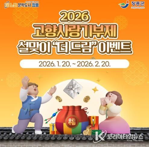 코리아타임뉴스 전남취재본부 | 장흥군은 설 명절을 앞두고 고향사랑기부제 활성화를 위해 1월 20일부터 2월 20일까지 ‘2026 설맞이 고향사랑기부제 더 드림 이벤트’를 진행한다.