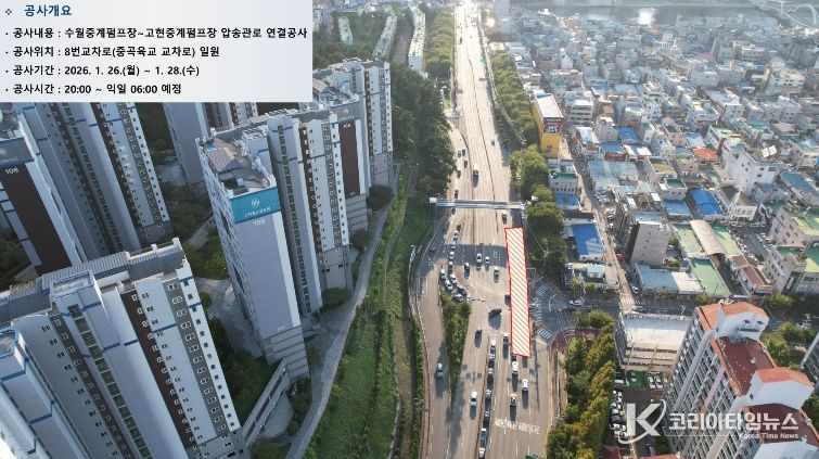 공사 기간 중에는 일시적인 차로 통제 및 교통 혼잡이 발생할 수 있으므로, 해당 구간을 이용하는 시민들은 교통안전 요원의 안내에 적극 협조하고, 가급적 우회도로를 이용해 줄 것을 당부했다.