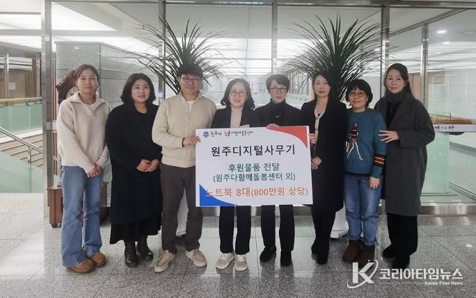 코리아타임뉴스 이아름 기자 | 원주시 단계동 소재 원주디지털사무기는 지난 23일 원주시 다함께돌봄센터 등 8개소에 총 800만 원 상당의 노트북 8대를 후원했다.