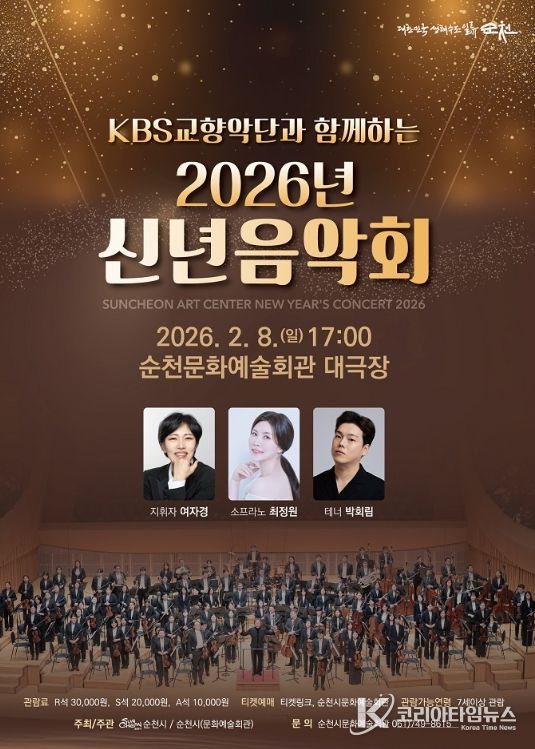 코리아타임뉴스 전남취재본부 | 순천시는 2026년 새해를 여는 첫 공연으로 대한민국을 대표하는 KBS교향악단 클래식공연을 오는 2월 8일(일) 오후 5시 순천문화예술회관 대극장에서 개최한다고 밝혔다.