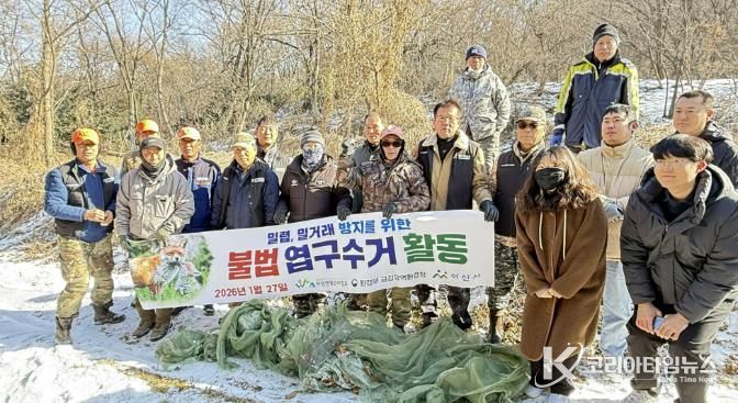 코리아타임뉴스 김택호 기자 | 아산시는 27일 영인면 일원에서 야생동물 포획을 목적으로 밀렵꾼들이 설치한 불법 포획도구에 대한 합동 수거 활동을 실시했다고 밝혔다.