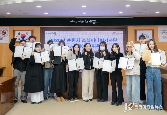 코리아타임뉴스 전남취재본부 | 순천시는 지난 28일 시청 소회의실에서 ‘2026년 순천시 소셜미디어기자단 및 쇼츠크리에이터 위촉식’을 열고 시민 참여형 SNS 홍보 강화에 나섰다고 밝혔다.