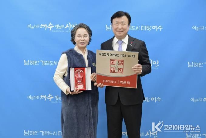 시 관계자는 “한과를 만드는 정성 어린 시간과 노력을 통해 전통의 맛을 재현하고 계승·발전시켜 오신 박윤덕 대표님의 대한명인 선정을 진심으로 축하드린다”며, “앞으로도 여수의 대표 전통 식문화 브랜드로 더욱 우뚝 설 수 있도록 함께 노력하겠다”고 전했다.