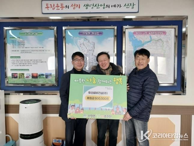 코리아타임뉴스 김택호 기자 | 우신설비건설(주)은 29일 선장면 행복키움추진단과 후원 협약을 체결하여 관내 취약계층 지원을 위한 후원금 50만 원을 전달했다.