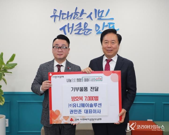 권기창 안동시장은 “경기가 어려운 시기임에도 불구하고 이웃 도시 안동을 위해 나눔을 실천해 주신 권민준 대표님께 깊이 감사드린다”며 “기탁해 주신 방호복은 지역사회를 위해 땀 흘리는 봉사자들의 ‘안전 갑옷’이 될 것”이라고 전했다.