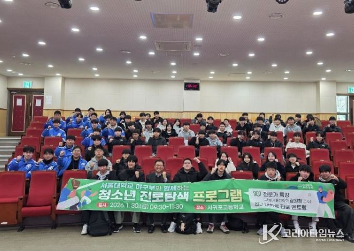 코리아타임뉴스 노승선 기자 | 서귀포시는 1월 30일 오전 9시 30분부터 11시 30분까지 서귀포고등학교에서 고등학생 60여 명이 참여한 가운데 서울대학교 야구부와 함께하는 청소년 진로탐색 프로그램을 개최했다.