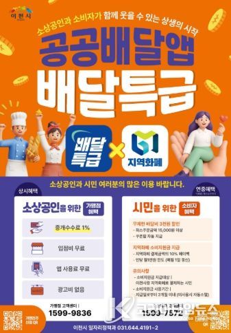 이번 안내는 민간 배달앱의 높은 중개수수료로 어려움을 겪는 소상공인에게 공공배달앱 ‘배달특급’의 이점을 알리고, 지역 내 소비 진작을 위한 ‘이천사랑 지역화폐’ 가맹점 참여를 독려하기 위해 마련됐다.