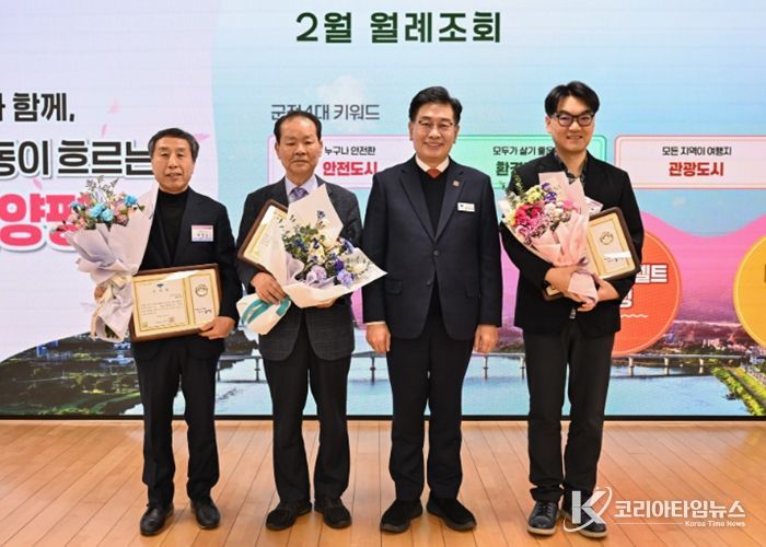 코리아타임뉴스 기동취재팀 | 양평군은 2일 군청 대회의실에서 열린 2월 중 월례조회에서 일상 속 위급한 상황에서 이웃의 생명과 안전을 지킨 선행 군민 3명에게 표창을 수여했다.