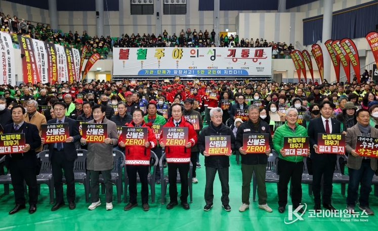 코리아타임뉴스 김태훈 기자 | 의성군은 산불 발생 위험이 높은 시기를 맞아 2월 2일, 의성종합체육관에서 산불방지 대군민결의대회를 개최하고 산불 예방을 위한 군민 실천 의지를 하나로 모았다.
