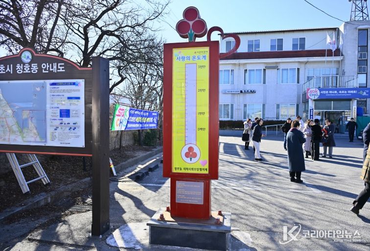 코리아타임뉴스 이아름 기자 | 청호동 지역사회보장협의체는 2월 3일 청호동주민센터에서 2026년 ‘사랑의 온도탑 제막식’을 개최하고, 청호동 아바이나눔기금 조성을 위한 성금 접수와 모금 활동을 전개했다.