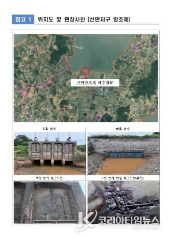 해제면 신만방조제 개보수사업은 노후 배수갑문의 성능 보완과 기능 향상을 위한 정비사업으로, 총 40억 원(국비 20억 원·도비 4억 원·군비 16억 원)이 투입된다.