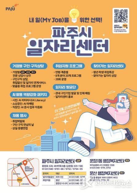 코리아타임뉴스 윤광희 기자 | 파주시 일자리센터는 경기 둔화와 고용 불확실성이 지속되는 가운데 시민의 안정적인 취업과 지역 고용 기반 강화를 위해 녪년 사업 운영계획’을 수립하고, 시민 중심의 종합형 취업지원 서비스를 본격 추진한다.