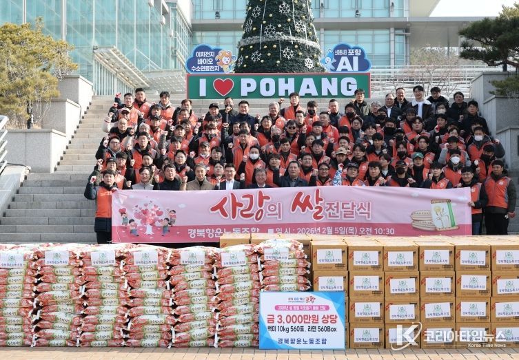코리아타임뉴스 경북취재본부 | 포항시는 5일 경북항운노동조합(위원장 김철성)이 설 명절을 맞아 소외된 이웃을 위해 3천만 원 상당의 백미(10kg) 560포와 라면 560박스를 기탁했다고 밝혔다.